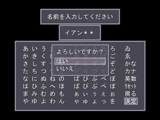 <課題> 1:キャラが話しているとき、名前が出たほうが良いのでは。 2:暗転の秒数。 3:文章がメッセージウィンドウからはみ出す。 *4:名前入力イベント